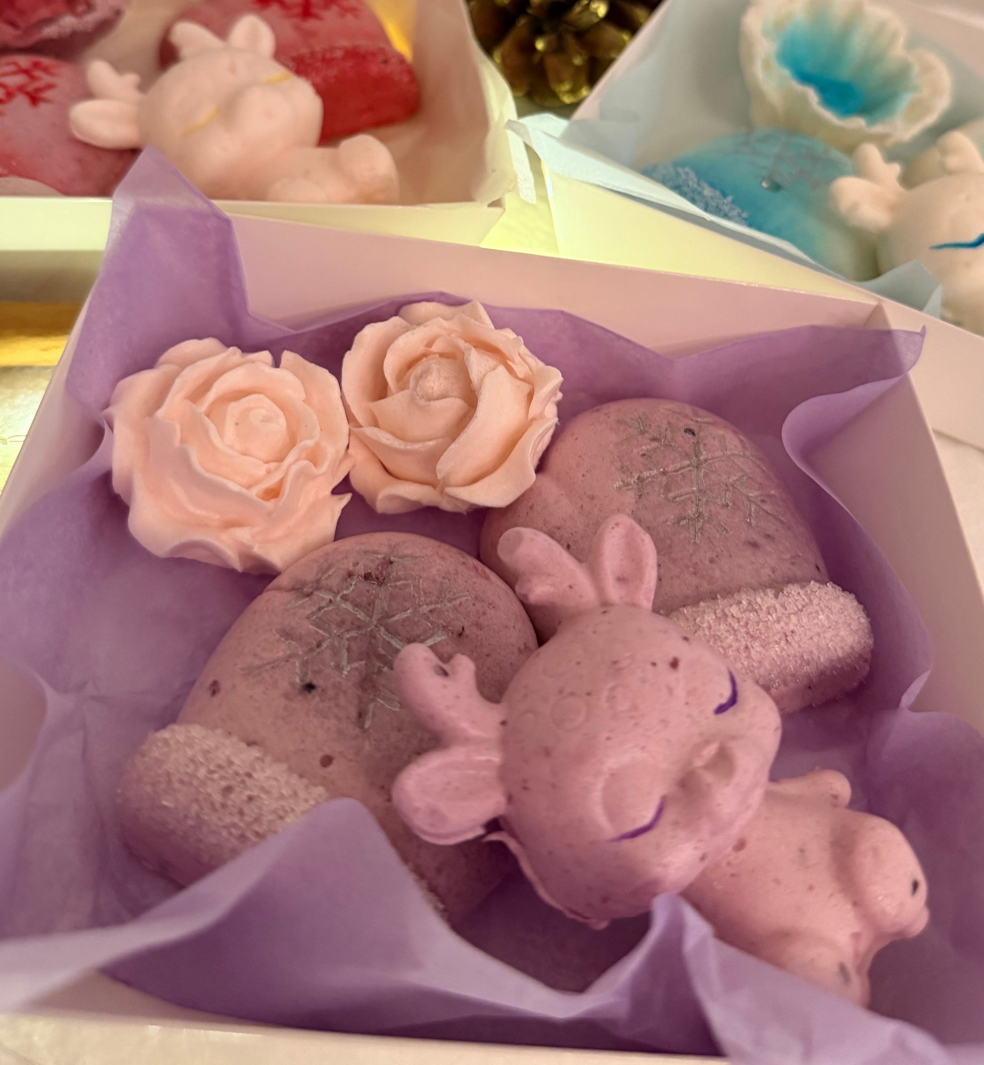 Ingredients: egg whites powder, agar agar, sugar, homemade fruit puree, food colouring (optional)